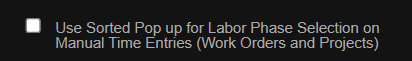 When you clock into a WO or Project, the Labor Phases are in the order you’ve ordered them in Settings>Labor Phases. Previously, if you did a manual time entry on either a Project or WO, the list would be alphabetic instead. You now have an option to show them as ordered in settings. Settings>Module Settings>Projects> to turn on the option to mirror the order in Settings>Labor Phases.